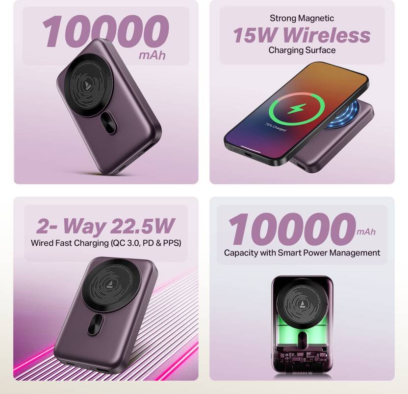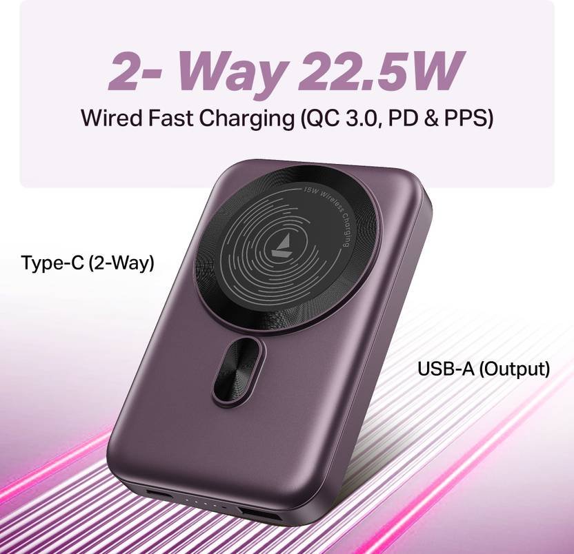 & Free Shipping10000 mAh 22.5 W Wireless With MagSafe Compact Pocket Size Power Bank (Purple, Lithium Polymer, Fast Charging, Quick Charge 3.0 for Mobile)