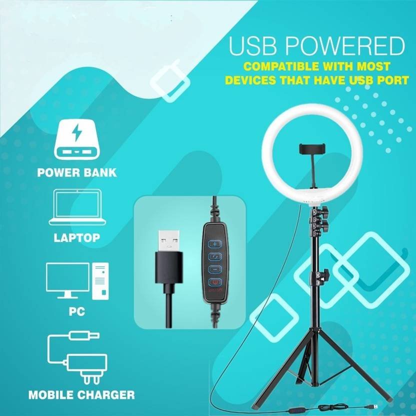airtech Strong metal Black tripod stand with ring light for phography and video Tripod Kit, Tripod, Monopod (Black, Supports Up to 1999 g)