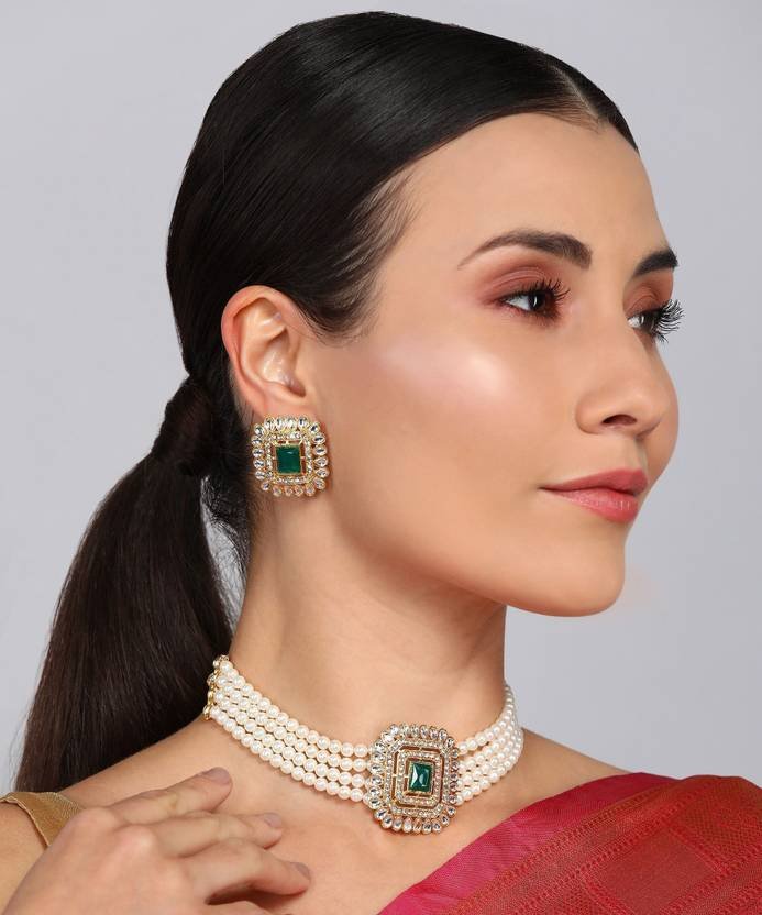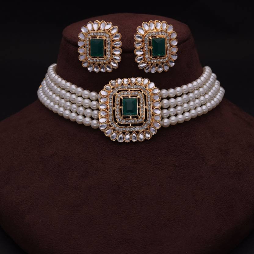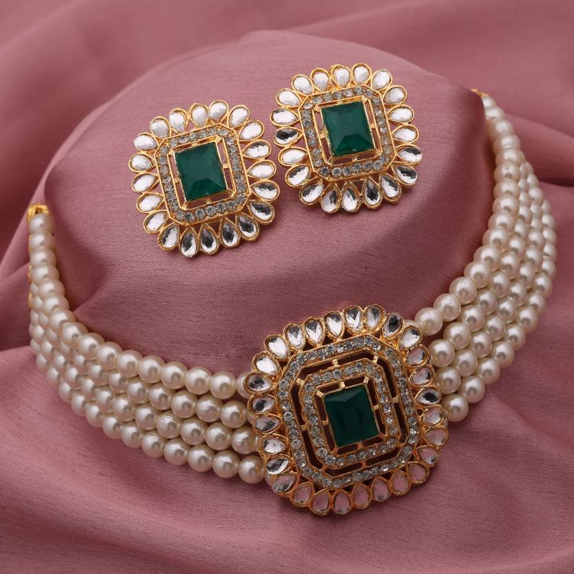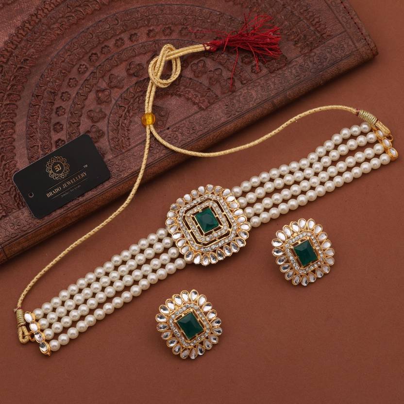 Brass Gold-plated White Jewel Set (Pack of 1)