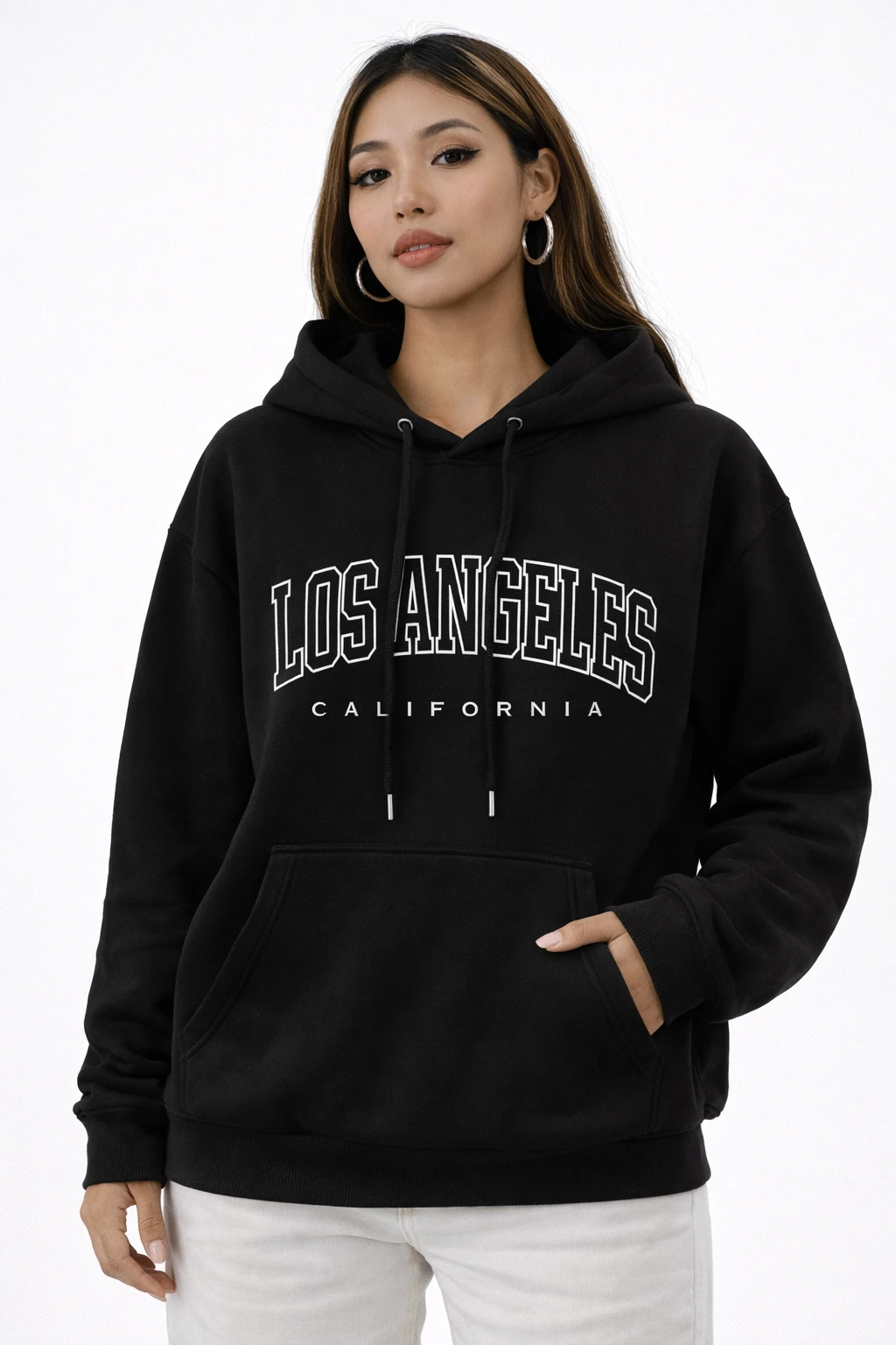 Upgrade your everyday streetwear with this Los Angeles California printed hoodie in classic black.