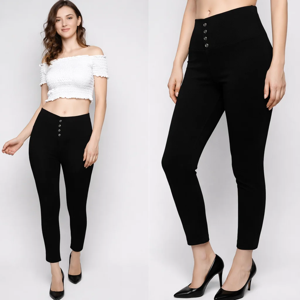 SILKY 5-BUTTON PLAIN JEANS FOR WOMEN JET BLACK
