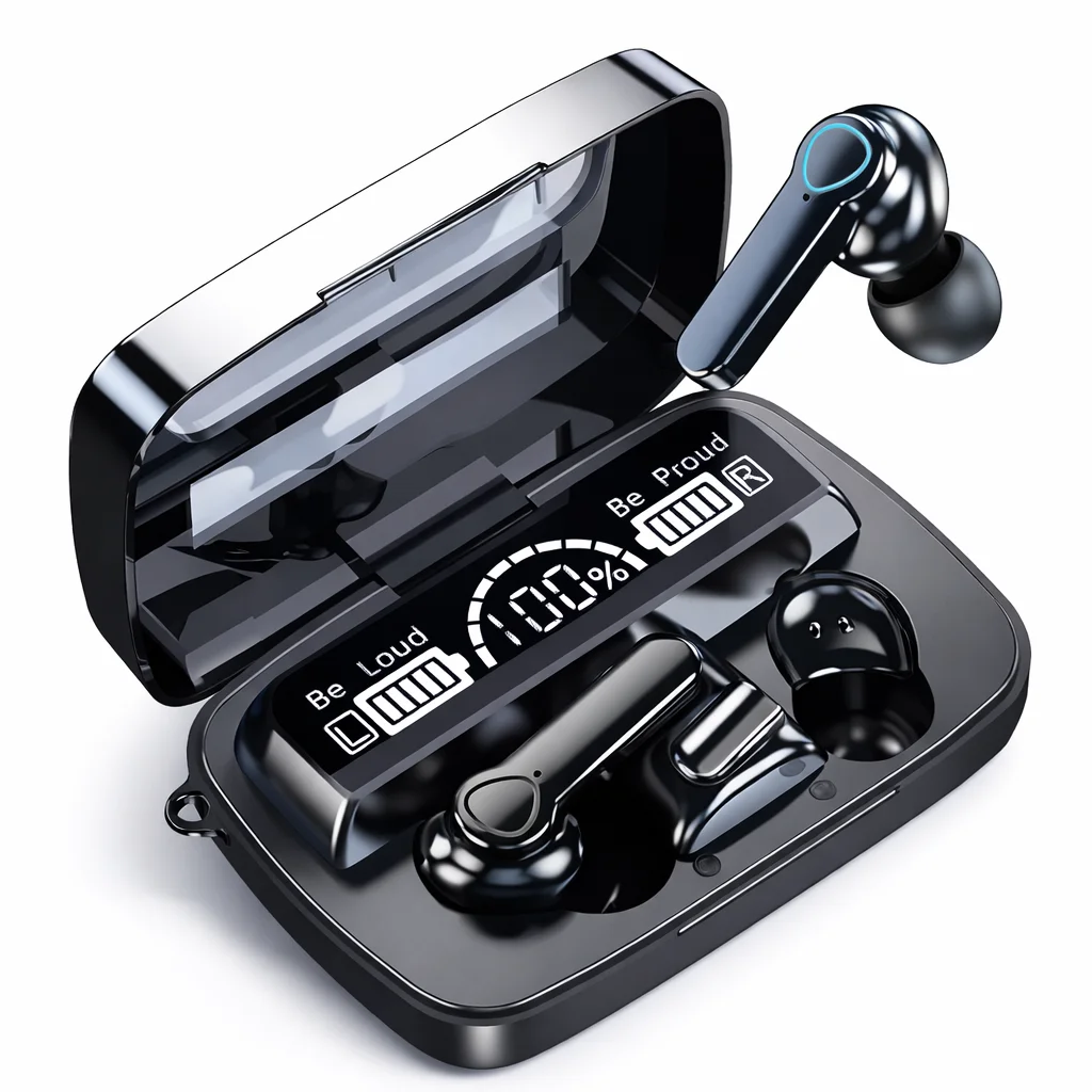 Upgrade your listening experience with these premium wireless earbuds designed for powerful sound, modern style, and smart features. The sleek charging case comes with a digital LED display that shows battery percentage for both earbuds and the case, keeping you informed at all times.